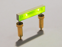 This unusual LED has a side emission package and is designed for use in older backlit LCD displays. Each LED contains two dies in a plastic package with a side-facing cavity. In normal use, these would be mounted along the edge of a plastic diffuser to provide backlighting to a 1980s LCD display.