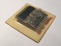 Released in 1977, the Litronix DL1416 is a sophisticated intelligent LED display which incorporates LED dies, display drivers, and character memory into a single device. The DL1416 is able to decode 6 bit TTL-level ASCII without any external components and also includes a cursor display function that can flash an indicator over a character without erasing that character from display RAM. The LED readouts themselves are alphanumeric single die chips that have been bonded to a PCB substrate and sealed under plastic magnifier lenses for improved visibility. Unfortunately the display is quite large relative to the size of the digits displayed; a bulky plastic compartment below the display area contains the CMOS logic for the display RAM and character driver. This logic compartment makes vertical tiling of the DL1416 inconvenient; fortunately multiple 1416s could still be combined horizontally into displays of any length. The DL1416 was well received by the nascent personal computer market of the late 1970s, and saw use in many products.