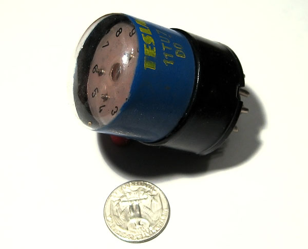 Unfortunately, the example shown here is outgassed, so you will have to use your imagination to picture what an functioning 11TU7 looks like. In operation, the tube produces an orange discharge beneath the currently selected number.