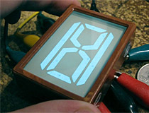 The IEL-0-VI represents a not-often-seen class of display that was used almost exclusively within the former Soviet Union; a segmented electroluminescent display. Segmented EL displays use phosphor, but are fundamentally different from VFDs in that they are not vacuum tubes and do not have a hot cathode filament. Instead, an organic resin with a crystalline phosphor suspension is sandwiched between a conductive bottom layer and a tin oxide glass window to form a capacitor, similar to the way in which modern EL wire works. When rapidly charged and discharged by a high voltage source, the phosphor emits light which can be seen through the glass front of the display. The IEL-0-VI requires an AC voltage of approximately 200 volts at 400hz to function properly; approximately 8 times the voltage required to light a similar size VFD. The strange looking high-efficiency segment pattern serves a special purpose; it can generate nearly every Cyrillic and Roman character (except the letter T) using only eight segments.