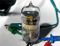Unfortunately, the example shown here is outgassed, so you will have to use your imagination to picture what an functioning 11TU7 looks like. In operation, the tube produces an orange discharge beneath the currently selected number.